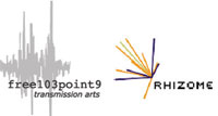 free103point9 and Rhizome are pleased to announce an online exhibition of web-based projects selected from an open call for submissions. Surge includes works by artists 31 Down, Abe Linkoln and Marisa Olson, Angel Nevarez and Alex Rivera, NYSAE (New York Society for Acoustic Ecology), Jim Punk, and Leslie Sharpe. The featured projects employ new media tools to both conceptually and formally address different possibilities for transmission art online. Some consider the nature of signals as they move through the ether; others appropriate forms of wireless transmission, such as the military’s aerial ‘drone’ or the programming language AsCii, to propose new kinds of digital communication. A public presentation in conjunction with the exhibition will take place at Participant, Inc. in New York in March, 2006.