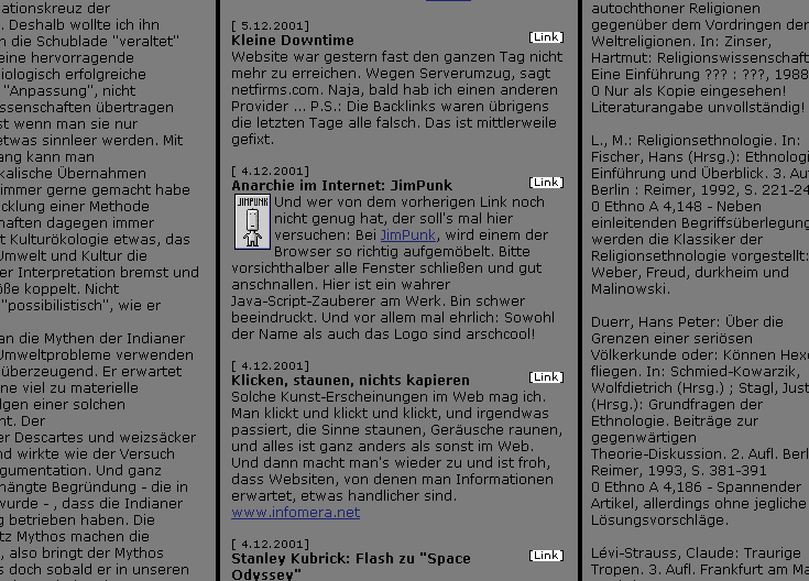 Subject : Private Gedanken und Internet-FundstŸckeBy : Date : 2001/12/04 Link : http://kerlone.netfirms.com/